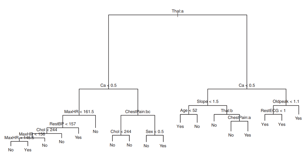 RestECG < 1은 둘다 Yes라는 똑같은 결과가 나타납니다. 그런데도 가지치기를 한 이유는
