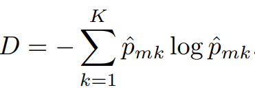 The entropy는 $\hat{p_{mk}}$'s가 모두 0 또는 1에 가까우면 0에 가까운 값을 가집니다.