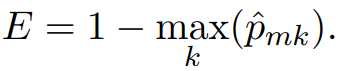 $\hat{p_{mk}}$는 k번째 class로 부터 m번째 region안의 trainig observations의 비율입니다.