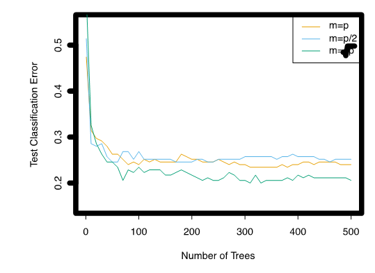 Random forests가 m = p를 사용하면 이것은 단순 bagging과 다를 바 없습니다.