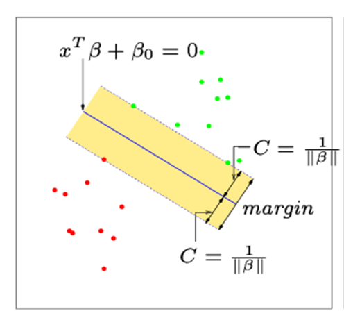 점선 사이의 거리는 margin 또는 2C를 나타냅니다.