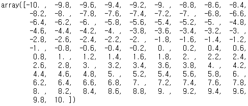 x = np.linspace(-10, 10, 101) # x 정의