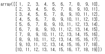 np.arange(1, 11) + np.arange(0, 10)[:, np.newaxis]