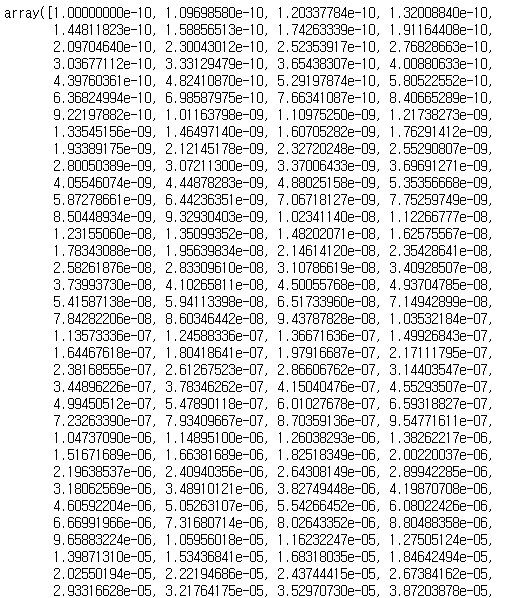 numpy.logspace는 log scale로 변환된 값을 arrary로 반환합니다.