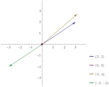 2차원 공간상에 존재하는 벡터의 예는 다음과 같습니다.