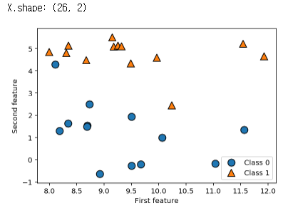 두 개의 특성을 가진 forge 데이터셋은 인위적으로 만든 이진 분류 데이터셋입니다.