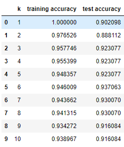 이웃의 수가 늘어나면 모델은 단순해지고 훈련 데이터의 정확도를 줄어듭니다.