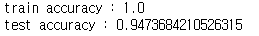 즉 모델이 테스트 데이터셋에 있는 샘플 중 94.73%를 정확히 예측하였습니다.