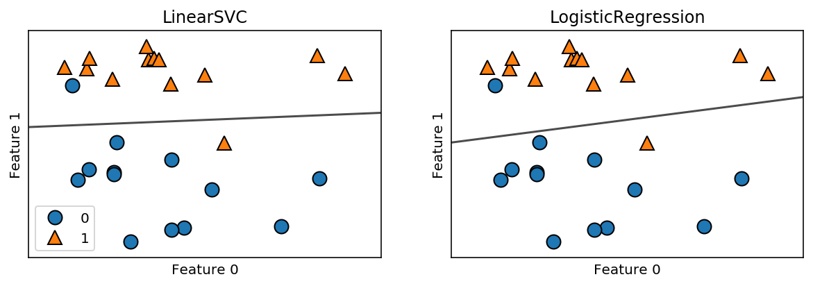 많은 선형 분류 모델은 태생적으로 이진 분류만을 지원합니다. 즉 다중 클래스를 지원하지 않습니다.