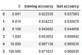 'training accuarcy' : training_accuracy,