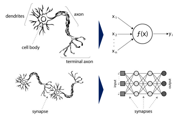 뇌 구조 (Biological Neural Networks)는 지능형 기계를 구축하는데 영감을 주었습니다. -> 인공신경망 (Artificial Neural Networks)