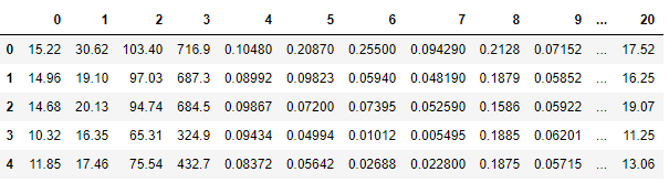 훈련 세트의 X를 데이터프레임으로 나타냈습니다.