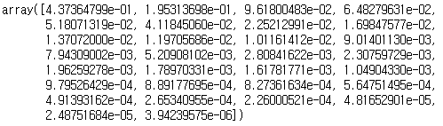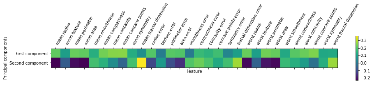 components_의 각 행은 주성분 하나씩을 나타내며 중요도에 따라 정렬되어 있습니다.