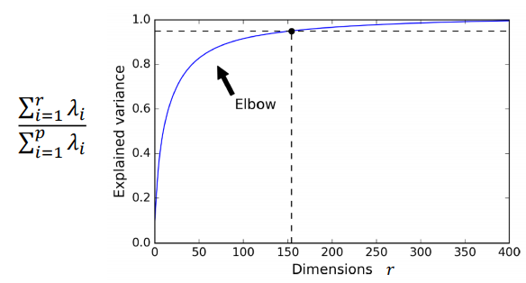 그렇지 않은 경우에는 충분히 큰 분산의 비율 (예를 들어 95%)에 준하는 차원의 수를 선택하는 것을 선호합니다.