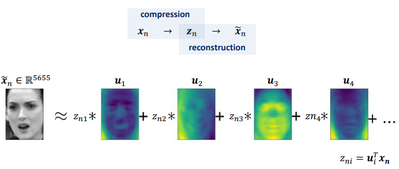 $\widetilde{\mathbf{x_{n}}} = \sum_{i=1}^{r}z_{ni}\mathbf{u_{i}}$