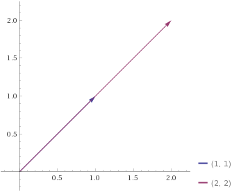위의 두 벡터는 둘의 계수가 모두 0이 아닌 이상 선형 결합을 한다해도 0을 만들 수 없습니다.