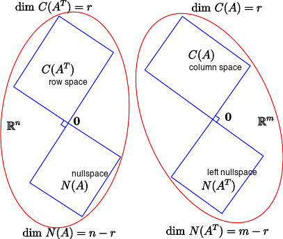 Column space와 Left null space는 직교하여 m차원 공간을 형성합니다.