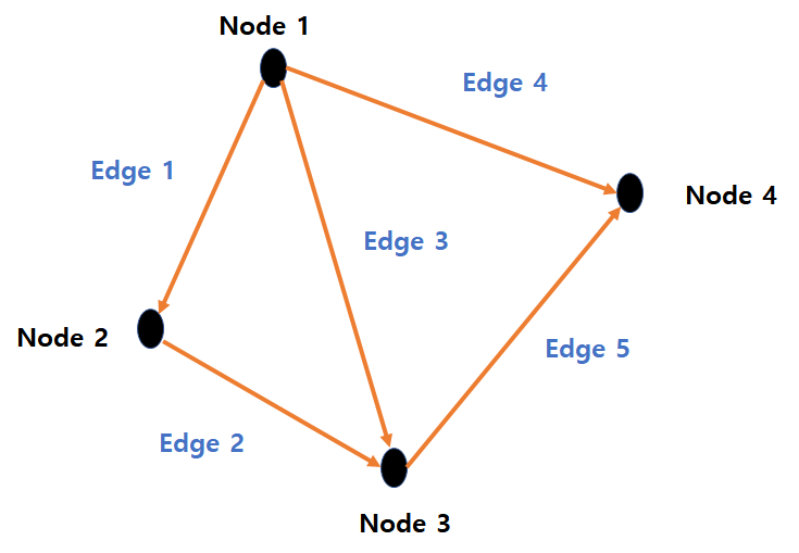 그래프 (Graph)는 꼭짓점 (node)와 변 (edge)로 이루어져 있습니다.