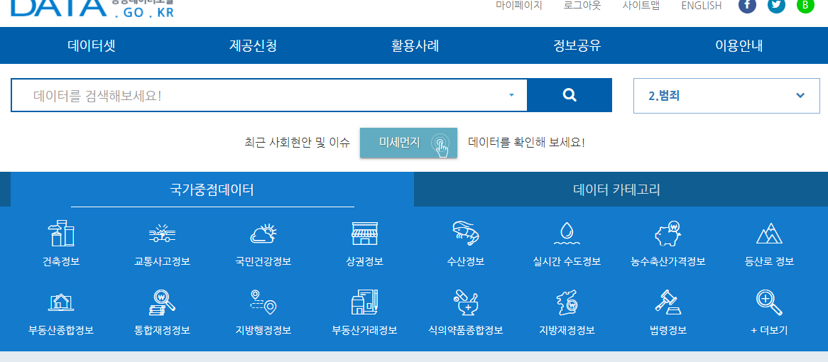 로그인을 한 후에 국가중점데이터에서 등산로 정보를 클릭합니다.