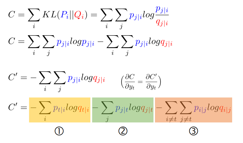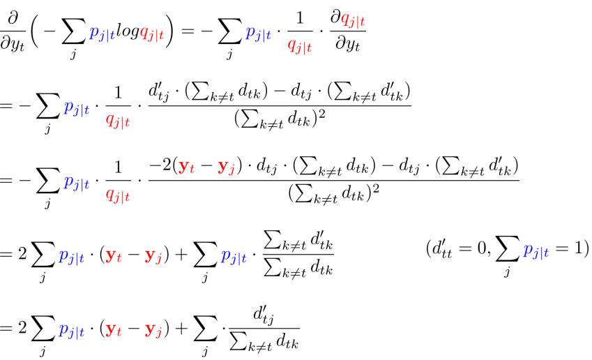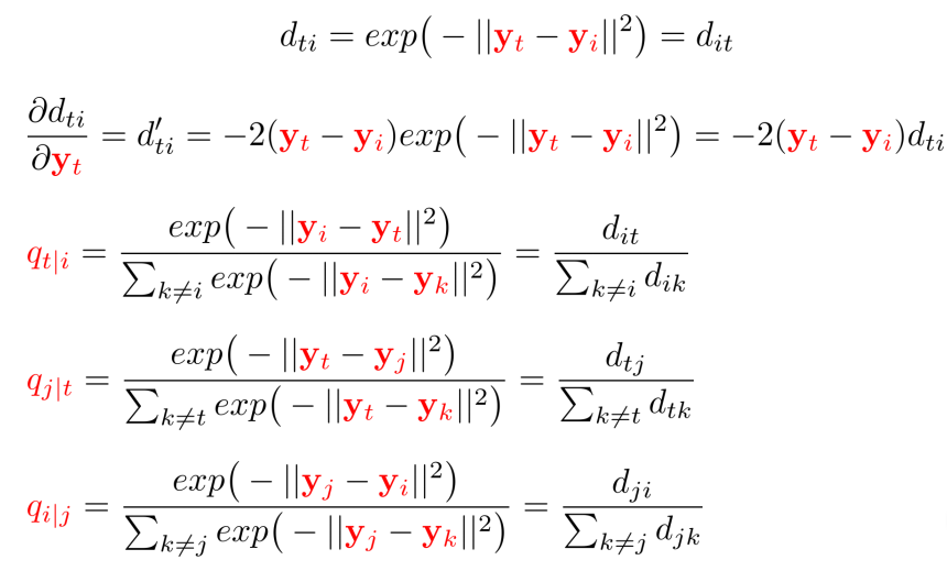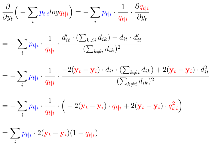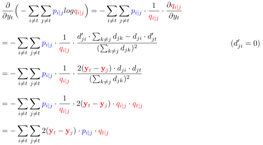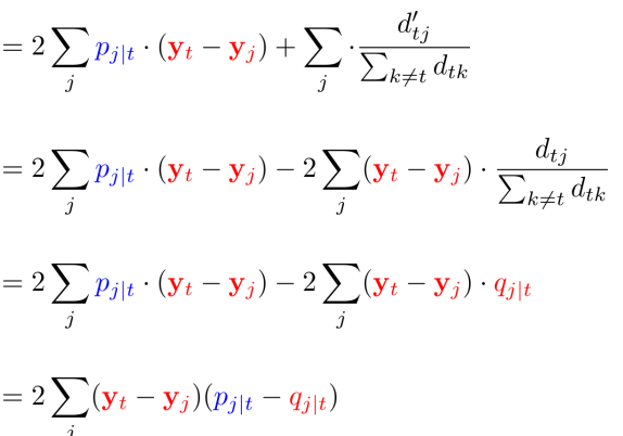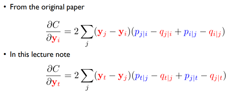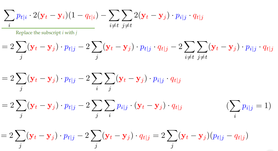 원래 SNE에 대한 Gradient를 계산할 수 있었으면 나머지 Gradient는 어렵지 않게 계산 가능