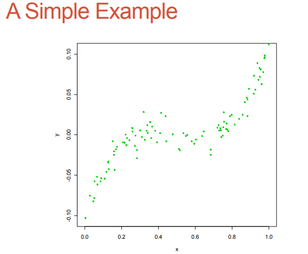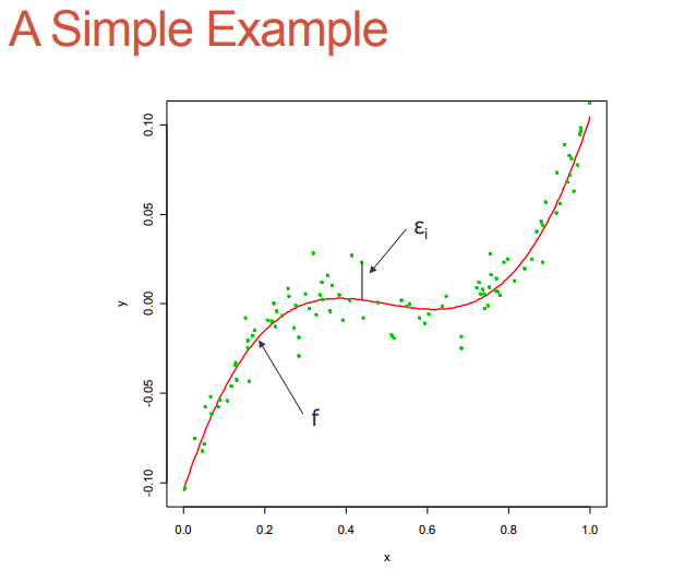 여기서 f는 알지 못하는 함수이고 $\varepsilon$은 평균이 0인 우연오차(random error)입니다.