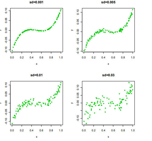 f를 추정하는데 어려움은 $\varepsilon's$의 표준 편차 때문입니다.