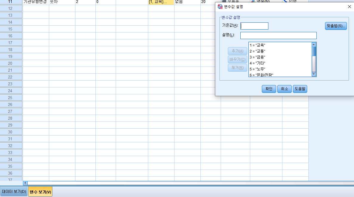 자동 코딩변경이 편한 것은 변수 보기에서 어떤 숫자가 어떤 값을 나타내는 지까지 다 입력된다는 점입니다.
