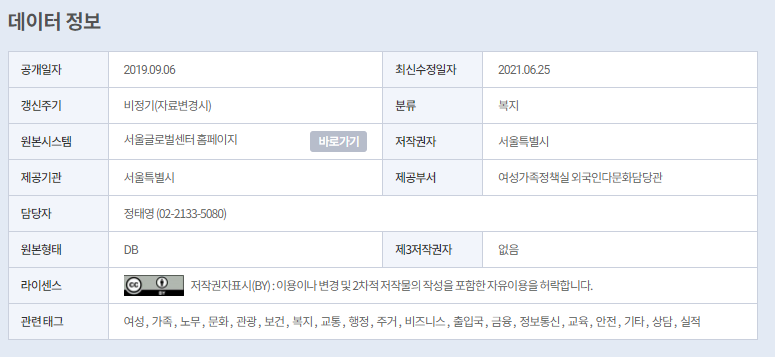 데이터는 서울 열린데이터 광장에서 가져왔으며, 이 데이터를 고른 이유는 딱히 없습니다.