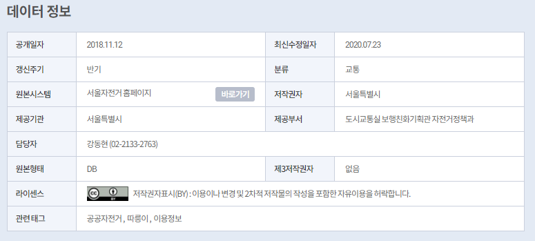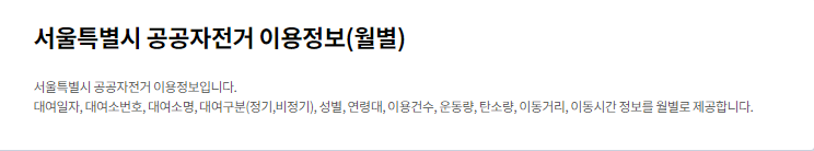 데이터는 서울 열린데이터 광장에서 제공하는 서울특별시 공공자전거 이용정보(월별)입니다.