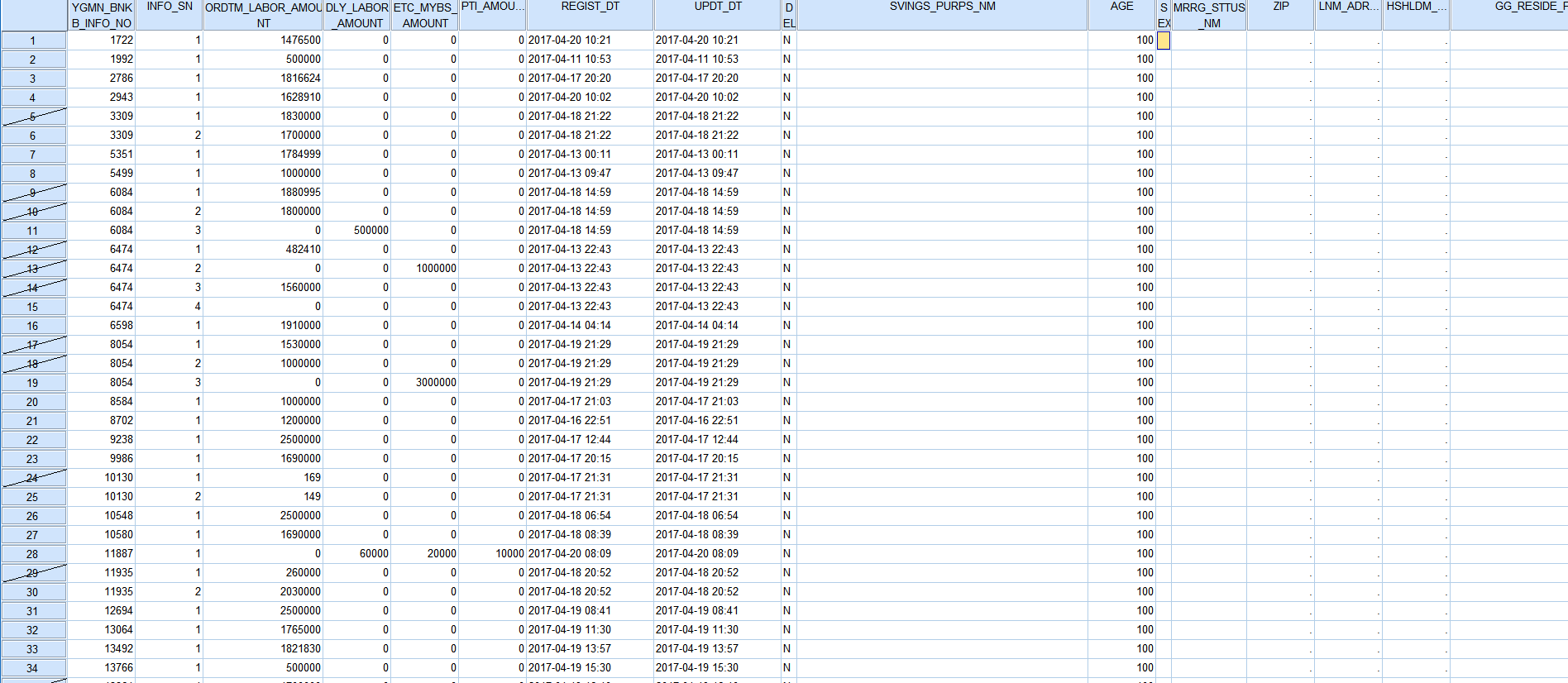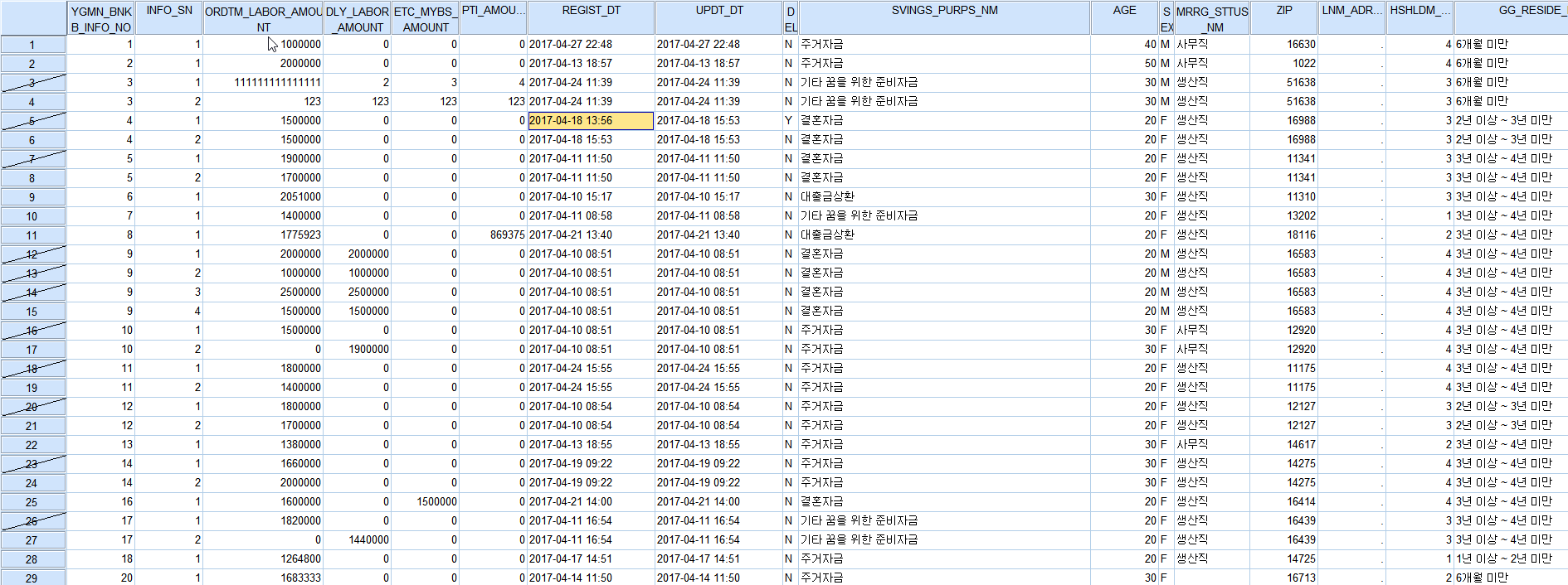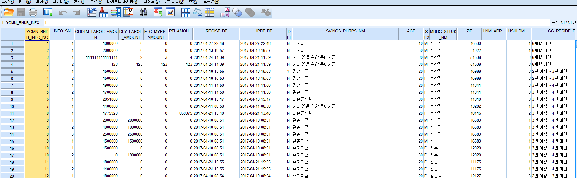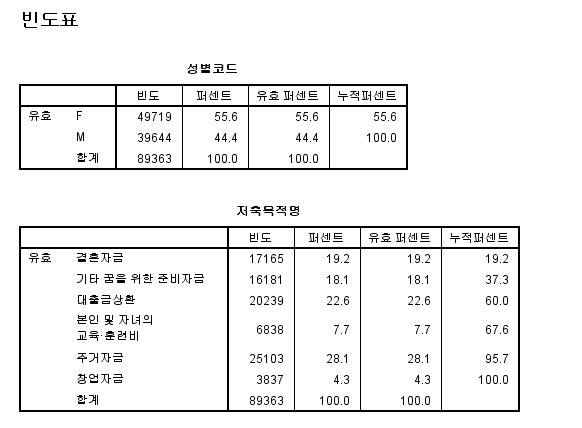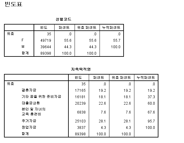 데이터는 위와 같고 SVINGS_PURPS_NM과 SEX 변수를 사용하겠습니다.