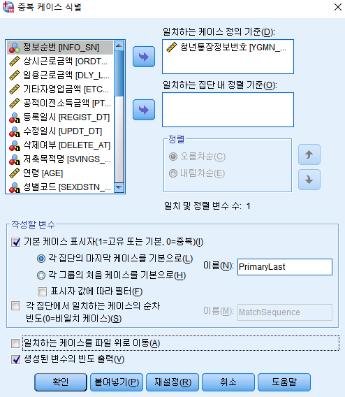 일치하는 케이스 정의 기준에 청년통장정보번호를 넣었고