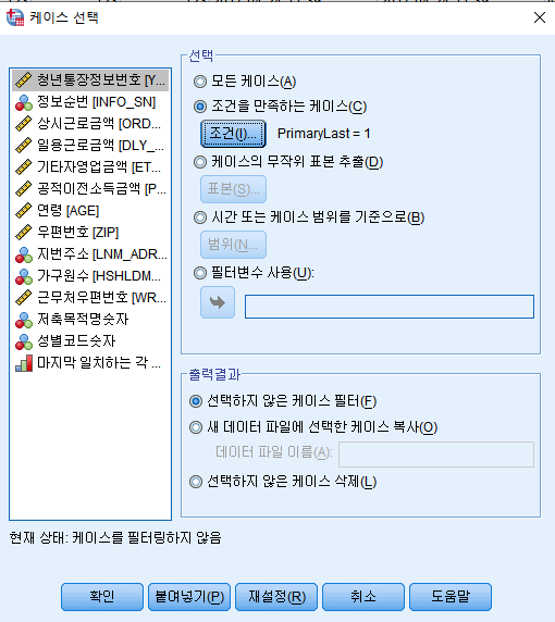 메뉴에서 데이터 > 케이스 선택을 클릭합니다.