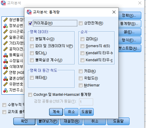 카이제곱에 체크 표시하고 계속을 클릭합니다.