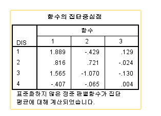 DIS가 1인 집단에서는 가장 높게 나타난 점수가 1.889입니다. 즉, 함수 1의 특징이 두드러집니다.