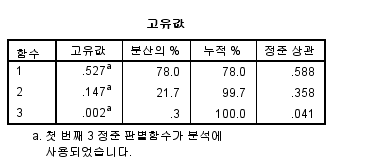 고유값과 정준 상관계수가 높을수록 독립변수의 설명력이 높음을 의미합니다.