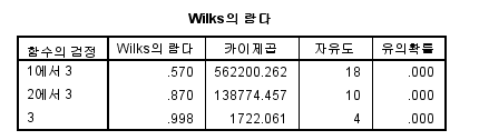 즉, 독립변수에 투입된 모든 변수들이 판별함수로 적합함을 나타냅니다.