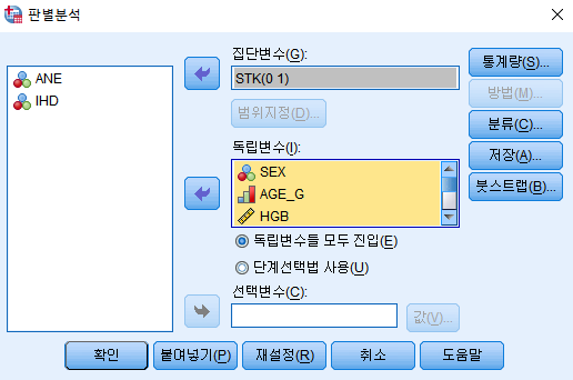 독립변수로는 ANE와 IHD를 제외하고 다 넣었습니다.