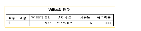 즉, 독립변수에 투입된 모든 변수들이 판별함수로 적합함을 나타냅니다.