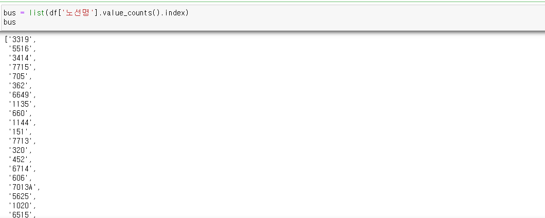 버스 노선명만 따로 list로 만들어 bus에 할당했습니다.