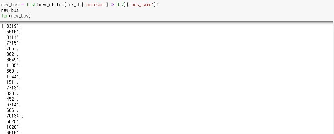 따라서 이제 상관관계가 0.7 이상만 남기고 아닌 노선을 지워 본 다음
