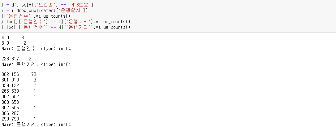 물론 상관계수가 0.85인 N16도봉은 운행건수 종류가 2개지만 운행건수 3과 4의 거리 차이가 확실합니다.