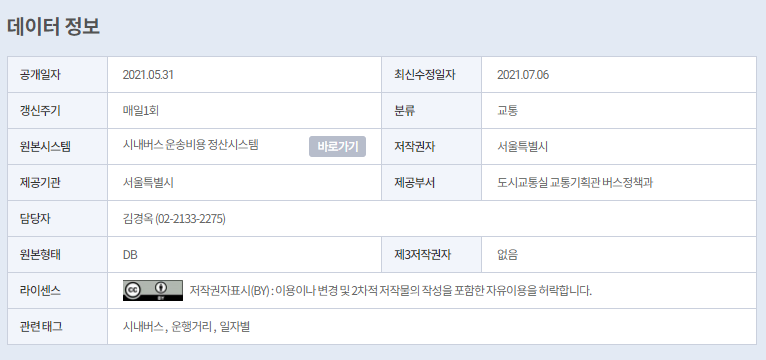 데이터는 서울 열린데이터 광장에서 제공하는 서울시 시내버스 노선별 일별 운행거리입니다.