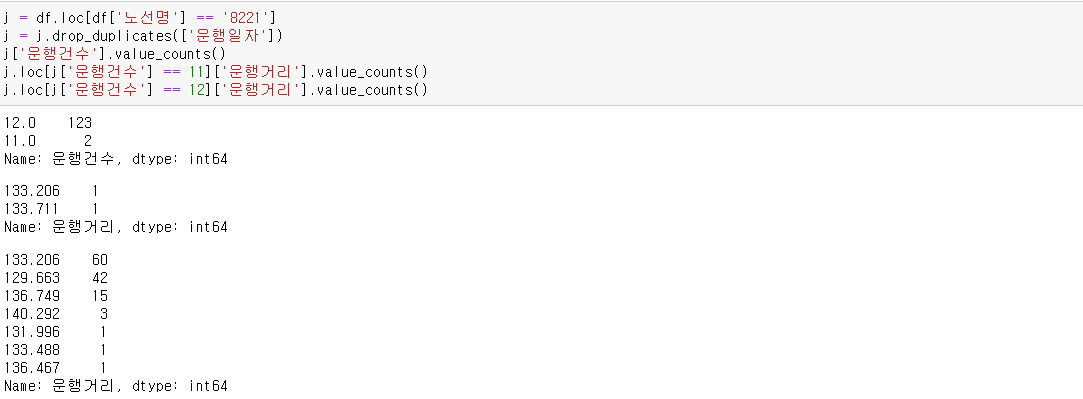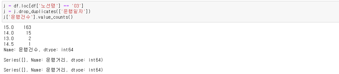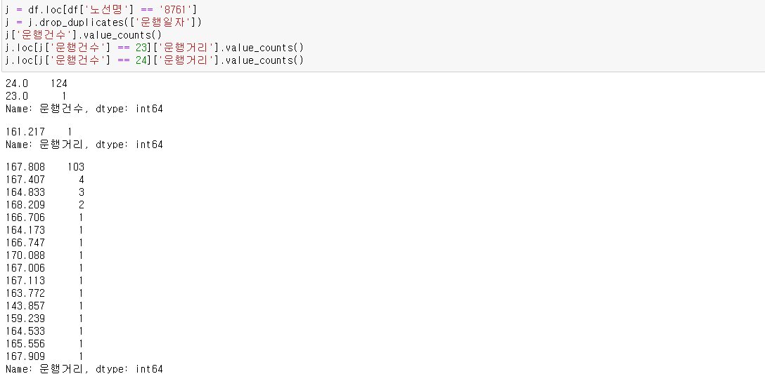 이유는 바로 매 운행일자마다 운행건수와 운행거리가 똑같았기 때문입니다.