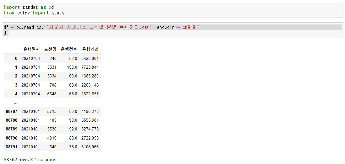 오늘은 서울시 시내버스 노선별 일별 운행거리 데이터를 가지고 상관분석을 해보겠습니다.