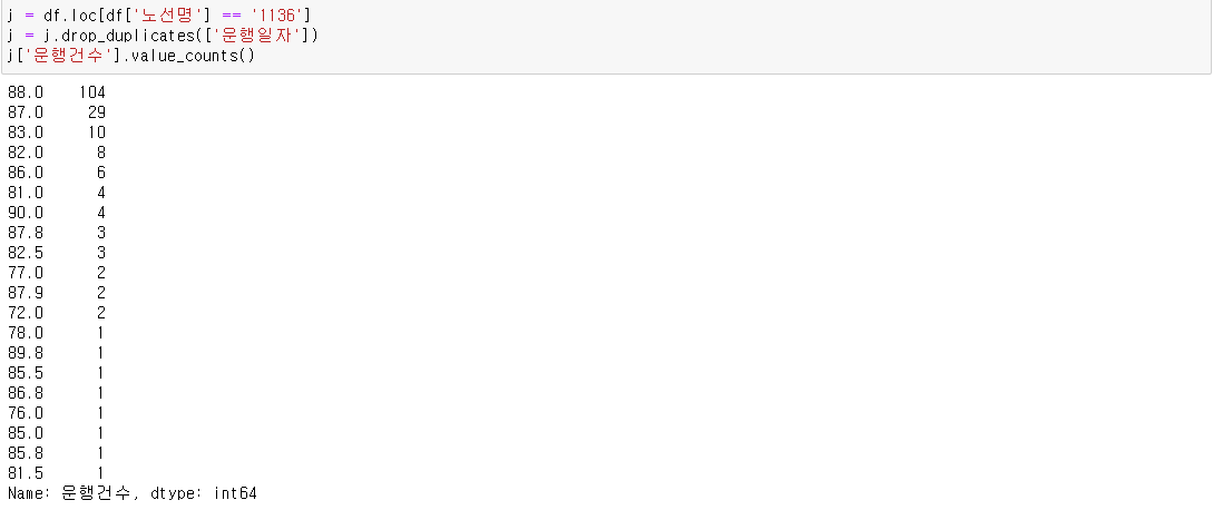 어떤 노선이 과연 운행건수와 운행거리의 상관관계를 낮추는 데 영향을 미쳤는지 보겠습니다.