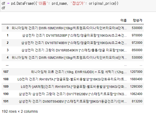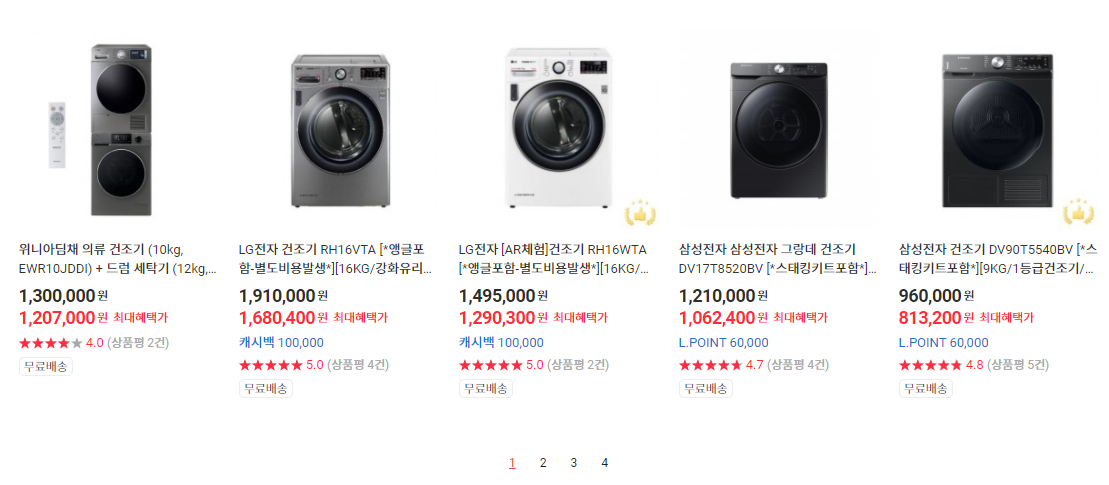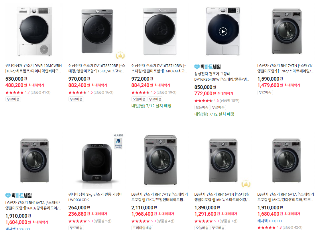 크롤링을 해야겠다는 생각은 SPSS로 각 기업의 건조기 가격 차이가 있는지 검정하고 싶었기 때문입니다.