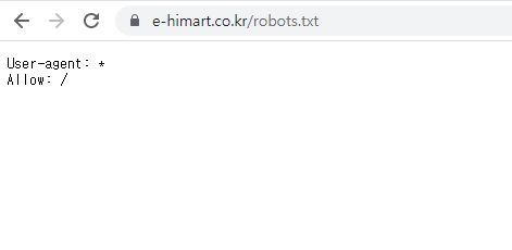 홈페이지 링크 뒤에 /robots.txt를 붙여 확인해보았고