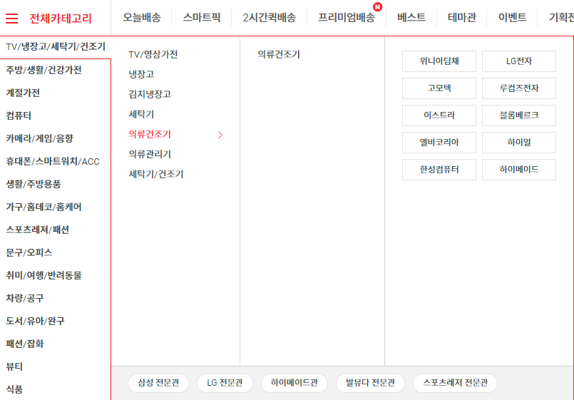 전체카테고리에서 TV/냉장고/세탁기/건조기 > 의류건조기를 클릭했습니다.
