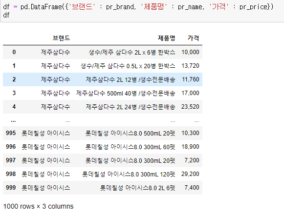 마지막으로 DataFrame으로 만들면 완성입니다.