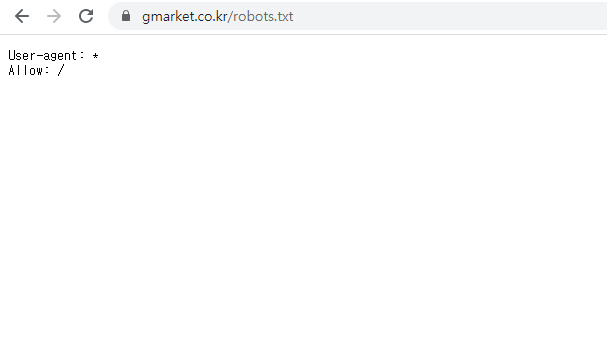 홈페이지 링크 뒤에 /robots.txt를 붙여 확인한 결과